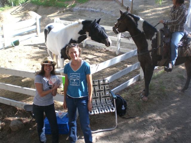 PVPHA President, Dale Allen with grandaughter, Victoria doubled check the winning hands as participants finished the Poker Ride at the Empty Saddle Club. Among the day's other activities included a Charo demonstration, Gymkhana and a Wild West Gunfight.